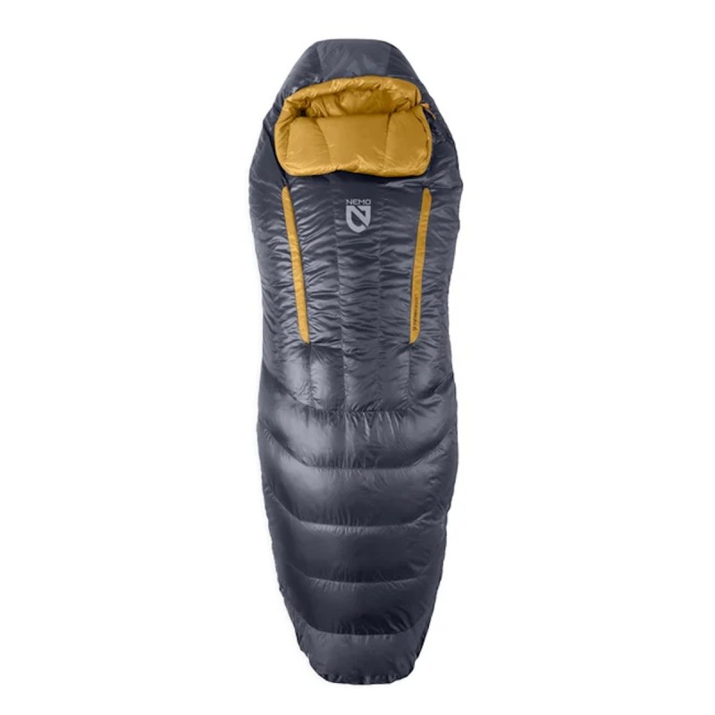 De Disco bevat een set Thermo Grill-ventilatieopeningen op de borst voor een nauwkeurig afgestemde temperatuurregeling en een betere slaapervaring. Elke Grill heeft een binnen- en buitenritssluiting met een tochtblokkerende tussenlaag, waardoor verschillende configuraties mogelijk zijn om de temperatuur van de slaapzak in te stellen zonder directe blootstelling aan koude lucht. De tochtkraag bij de halslijn heeft een nieuw ontworpen vorm om de slaaptemperatuur verder te optimaliseren. Ingestopt blokkeert de tochtkraag elke kou terwijl hij het comfort van uw bed thuis nabootst. Als het naar buiten wordt geduwd, helpt het overtollige warmte onmiddellijk af te voeren.